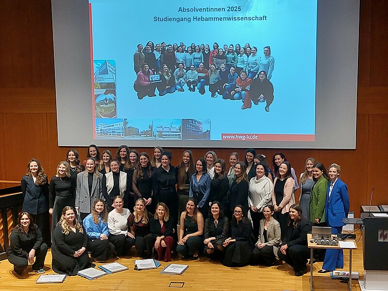 On Friday, 17.01.2025, the Ludwigshafen University of Business and Society (HWG LU) bid farewell to the first cohort of students on the dual degree programs in Midwifery Science after their state professional examinations. The graduation ceremony was largely organized by the 37 students and celebrated together with their partners from professional practice.