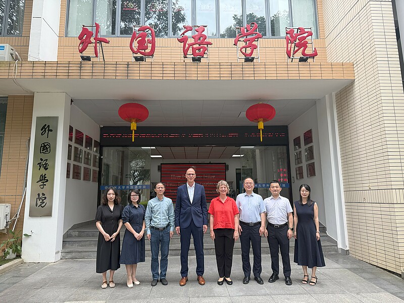 Der Präsident und Frau Prof. Dr. Barbara Darimont, Leiterin des China-Schwerpunkts am Ostasieninstitut, reisten anschließend nach Chengdu, um dort einen Kooperationsvertrag mit der Xihua Universität zu unterzeichnen. Chengdu beeindruckte durch seinen lebendigen Charakter, in dem Moderne und Tradition harmonisch miteinander verschmelzen. Besonders für Studierende ist die Stadt aufgrund der vergleichsweise niedrigen Lebenshaltungskosten und des reichen kulturellen Angebots attraktiv. Neben den offiziellen Programmpunkten besuchte Präsident Piller auch kulturell bedeutende Orte wie den Dichterpark zu Ehren von Du Fu und Li Bai, die Jinsha-Ausgrabungsstätte sowie den Wuhou-Park, der der Zeit der Drei Reiche (208 bis 280 n. Chr.) gewidmet ist.