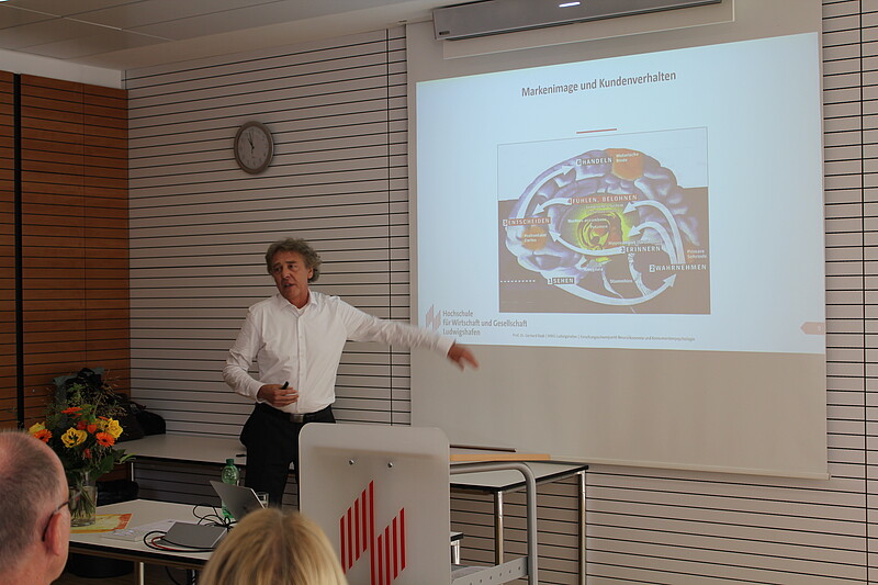Dass es sich bei Wirtschaftspsychologie um ein sehr spannendes Fachgebiet handelt und sich menschliches Verhalten im wirtschaftlichen Kontext nicht immer rational erklären lässt, bewies im Anschluss Prof. Dr. Gerhard Raab in seinem inspirierenden Fachvortrag. Der Experte auf dem Gebiet für Neuroökonomie und Konsumentenpsychologie an der HWG LU zeigte anhand von praktischen Beispielen und Erkenntnissen auf manchmal verblüffende Art und Weise, wie sich Verbraucherverhalten besser einordnen und betriebswirtschaftlich anwenden lässt.