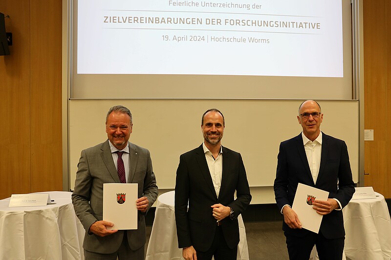 Im Rahmen der Forschungsinitiative wird für die Jahre 2024 bis 2028 zwischen dem Ministerium für Wissenschaft und Gesundheit des Landes Rheinland-Pfalz (MWG) und der Hochschule für Wirtschaft und Gesellschaft Ludwigshafen und der Hochschule Worms eine neue Zielvereinbarung geschlossen.