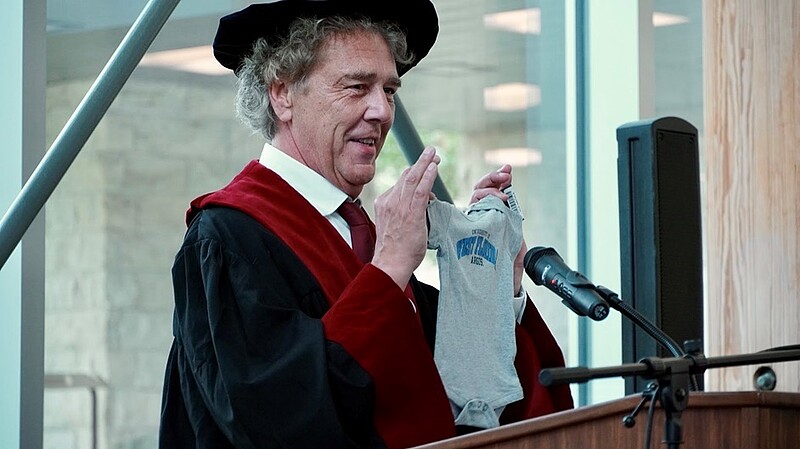Als Gastredner ergriff Jim Hoskins, Gründer und Präsident von CogAbility, das Wort. Er hat sich auf den Bereich der künstlichen Intelligenz spezialisiert und wies darauf hin, dass KI vor allem in der heutigen Arbeitswelt eine immer wichtigere Rolle spielt und das Mächtigste ist, was der Mensch je erfunden hat, allerdings im positiven wie im negativen Sinne. Den Absolventinnen und Absolventen stehe eine Welt der unbegrenzten Möglichkeiten und Chancen offen und sie sollten KI nach dem Motto "don't be afraid, be a leader" nutzen und dazu beitragen, diese Technologie in die richtige Richtung zu lenken.
