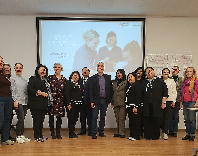 Eine zehnköpfige Delegation aus Usbekistan, unter der Leitung von Yusupalieva Gulnora Akmalovna, stellvertretende Leiterin des Ministeriums für Gesundheit und Leiterin des Bereichs Wissenschaft, Bildung und Innovationen sowie des Bereichs Entwicklung des höheren und sekundären medizinischen Bildungswesens, besuchte am Dienstag, 13. Februar 2024, die Hochschule für Wirtschaft und Gesellschaft Ludwigshafen (HWG LU). Ziel ihres Besuchs war es, Möglichkeiten der Zusammenarbeit im Bereich der Pflege und Hebammenwissenschaft zu erkunden.
