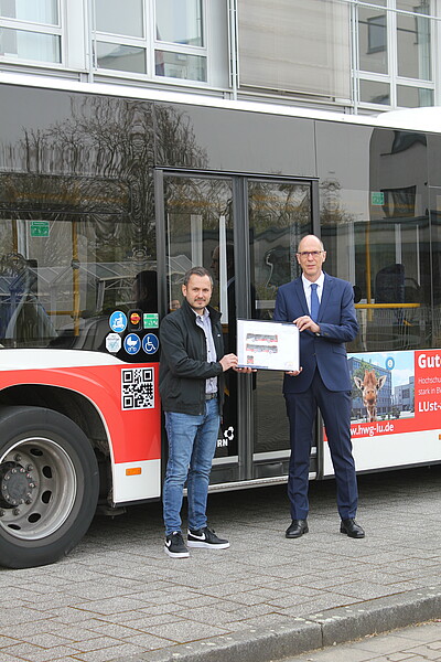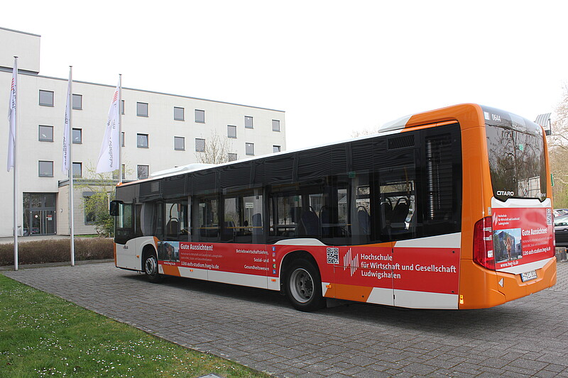 Schon entdeckt? Seit Neuestem rollt ein „Hochschulbus“ durch Ludwigshafen. Der neue Werbeträger macht die HWG LU im Stadtgebiet noch sichtbarer und richtet sich mit einem markanten Giraffenkopf und der Aufschrift „Gute Aussichten!“ insbesondere an Studieninteressierte. Die Botschaft: Beste Chancen für den Berufseinstieg mit einem Studium an der Hochschule für Wirtschaft und Gesellschaft Ludwigshafen – stark in BWL, Sozial- und Gesundheitswesen.