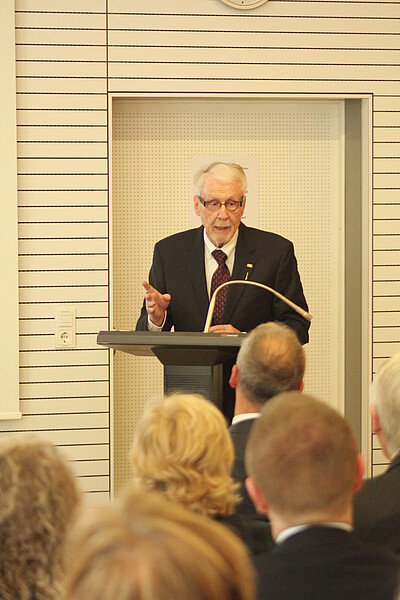 Am 21. Oktober zeichnete die Hochschule für Wirtschaft und Gesellschaft Ludwigshafen den US-amerikanischen Professor William L. Murray mit der Verleihung der Hochschulmedaille aus. Auf Vorschlag von Prof. Dr. Gerhard Raab und Prof. Dr. Karl-Heinz Beißner vom Fachbereich Marketing und Personalmanagement ehrte sie damit Murrays herausragende Verdienste als langjähriger Gastdozent und sein besonderes Engagement in der Lehre. Der Experte für „Finance“ war der erste Gastdozent der Hochschule für Wirtschaft und Gesellschaft Ludwigshafen, wo er von 1997 bis 2013 zunächst im Diplomstudiengang „Internationale Betriebswirtschaftslehre im Praxisverbund“, dann ab 2005 im Programm „International Business Administration“ (IBA) und ab 2010 auch im Programm „International Business Administration and InformationTechnology“ (IBAIT) als „visiting Professor“ Vorlesungen zur Finanzwirtschaft hielt. Auch im MBA-Programm des Transatlantik-Instituts in Kooperation mit der University of West Florida in Pensacola engagierte sich Murray in der Lehre. Von 1978 bis zu seiner offiziellen Pensionierung lehrte er als „Full-Professor“ an der University of San Francisco in den USA. Darüber hinaus war er als selbständiger Berater in den Fachgebieten „Corporate Planning and Financial Strategy“ tätig und lehrte als Gastprofessor auch an anderen Universitäten wie z.B. der University of California, Berkeley und der University of International Business and Economics, Beijing, China.
