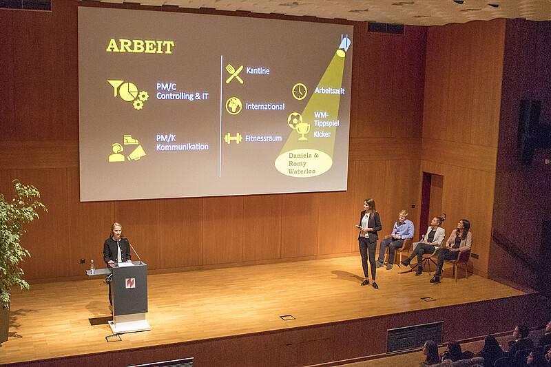 Prof. Dr. Gerhard Raab und Kathrin Paul präsentierten neben einigen Studierenden die dualen Studiengänge