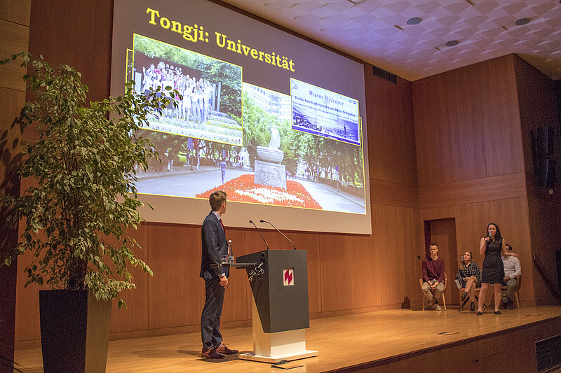 Der IBAIT-Studiengang, welcher ein Trimester an der Tongji Universität in Shanghai absolviert und danach die chinesische Arbeitskultur in einem sechswöchigen Praktikum kennengelernt hatte, ergänzte den Abend mit einer eigenen eindrucksvollen Berichterstattung.