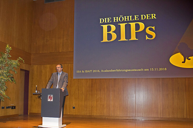 Am Abend des 15. November 2018 war es wieder soweit: Nach einem viermonatigen Aufenthalt in den unterschiedlichsten Ländern der Welt fand der Auslandserfahrungsaustausch der BIP-Studiengänge International Business Administration (IBA) und International Business Administration and Information Technology (IBAIT) statt. Die Studierenden hatten zahlreiche Erfahrungen in ihren Studien- und Praxiseinsätzen im Ausland gesammelt und luden nun dazu ein, ihre Eindrücke zu teilen. Die Vertreter/innen der Hochschule, der Partnerunternehmen sowie die Nachfolgejahrgänge der BIP-Studiengänge waren zusammengekommen, um den Erlebnisberichten der zurückgekehrten Globetrotter beizuwohnen.