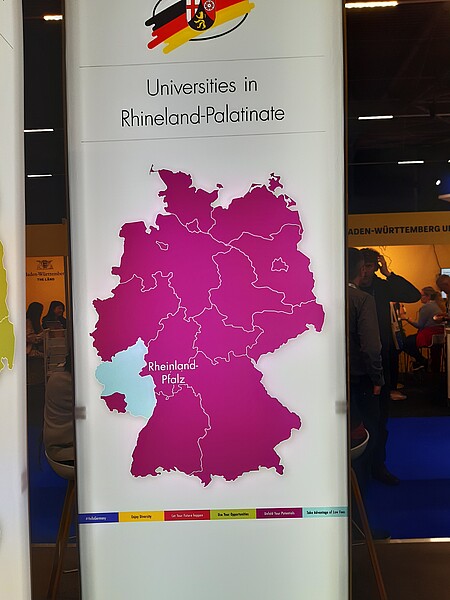 Gemeinsam mit Kolleg*innen von fast allen rheinland-pfälzischen Hochschulen vertrat die Leiterin des Bereichs Internationale Angelegenheiten der HWG LU, Kerstin Gallenstein, Land und Hochschule am Stand „Universities of Rhineland-Palatinate“. Status Quo und Entwicklungspotentiale von Kooperationen konnten ausgiebig besprochen werden mit Vertreter*innen von Partnerinstitutionen aus Norwegen, Finnland, Belgien, Frankreich, Spanien, Portugal, Österreich, Tschechien, Rumänien, Kroatien, der Ukraine, Georgien, der Türkei, Israel, Chile, der Dominikanischen Republik, USA, Kanada, Australien, Japan, Korea, Malaysia, Hongkong und Südafrika. Neue Kooperationen konnten mit der Westcliff University Irvine (USA) und der Sookmyung University Seoul (Südkorea) initiiert werden.