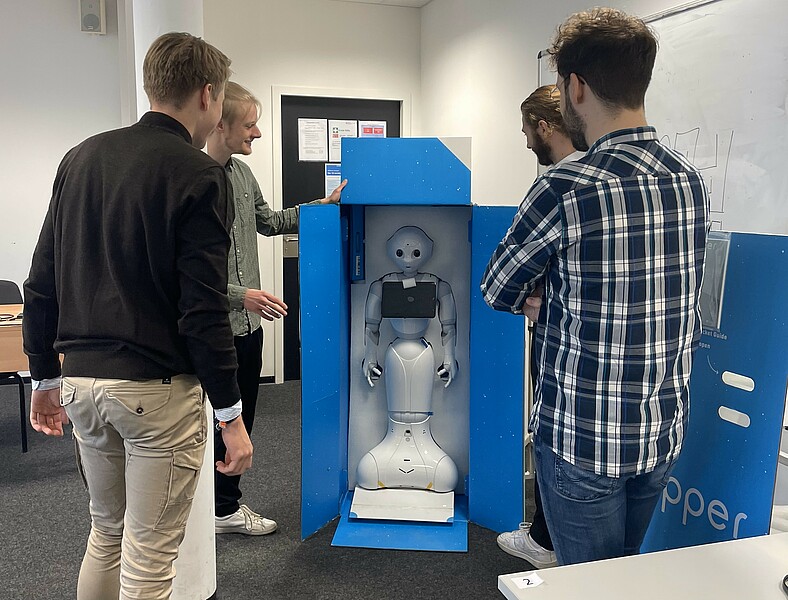 Mitte Dezember 2023 konnten Studierende des dualen Bachelor-Studiengangs „Internationale Wirtschaftsinformatik – International Business Administration and Information Technology“ (IBAIT) im Rahmen des von Prof. Dr. Gerhard Raab geleiteten Forschungsseminars „Neuroökonomie, Kundenverhalten und Informationstechnologie“ den humanoiden Roboter Pepper an der Hochschule für Wirtschaft und Gesellschaft Ludwigshafen (HWG LU) begrüßen.